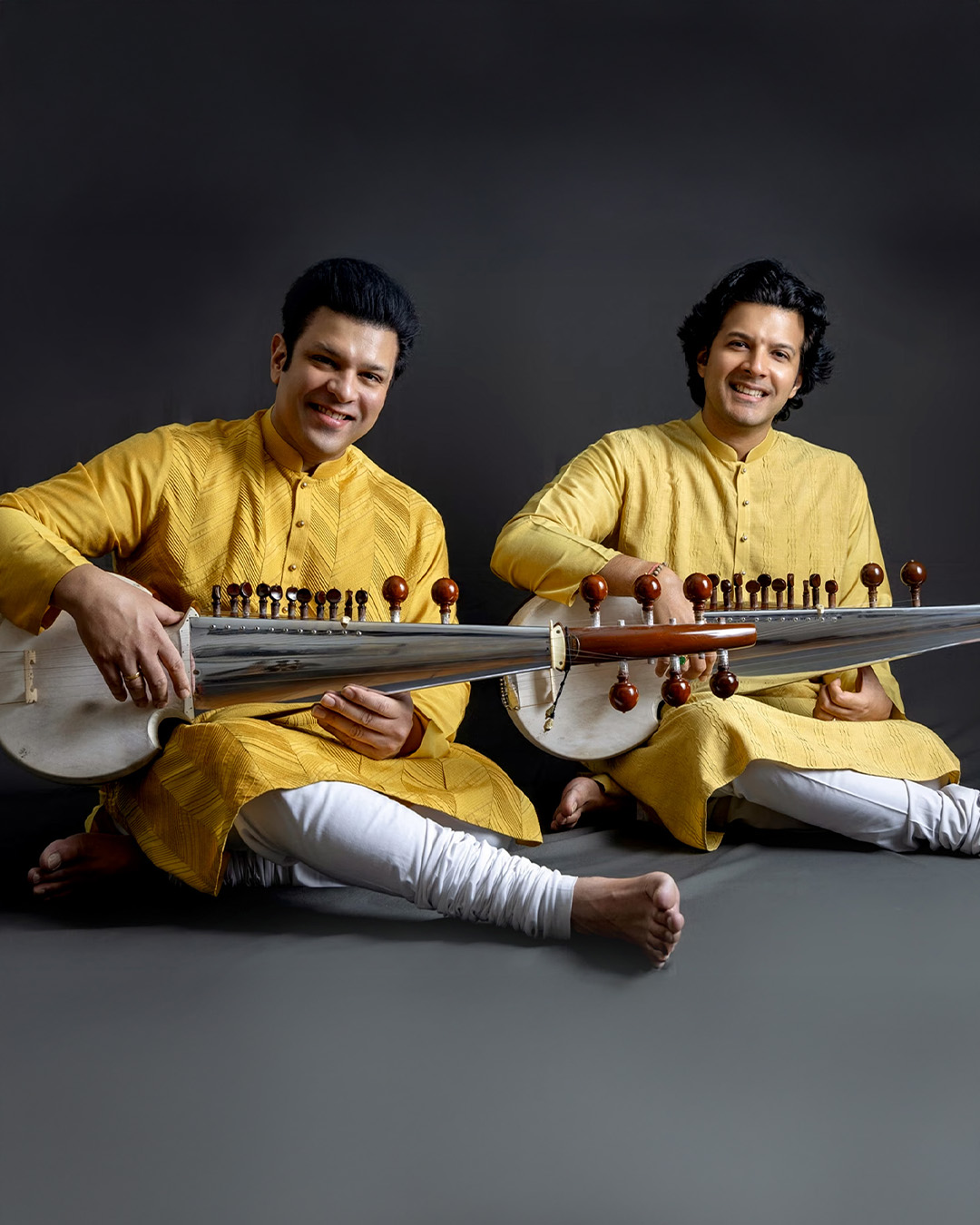 Amaan Ali Bangash and Ayaan Ali Bangash are seventh-generation sarod players from the Senia Bangash lineage — sons and disciples of Ustad Amjad Ali Khan, grandsons of Ustad Haafiz Ali Khan. Both gave their first public performances at eight years old. Both have since played Carnegie Hall, the Kennedy Centre, and the Nobel Peace Prize ceremony in Oslo.