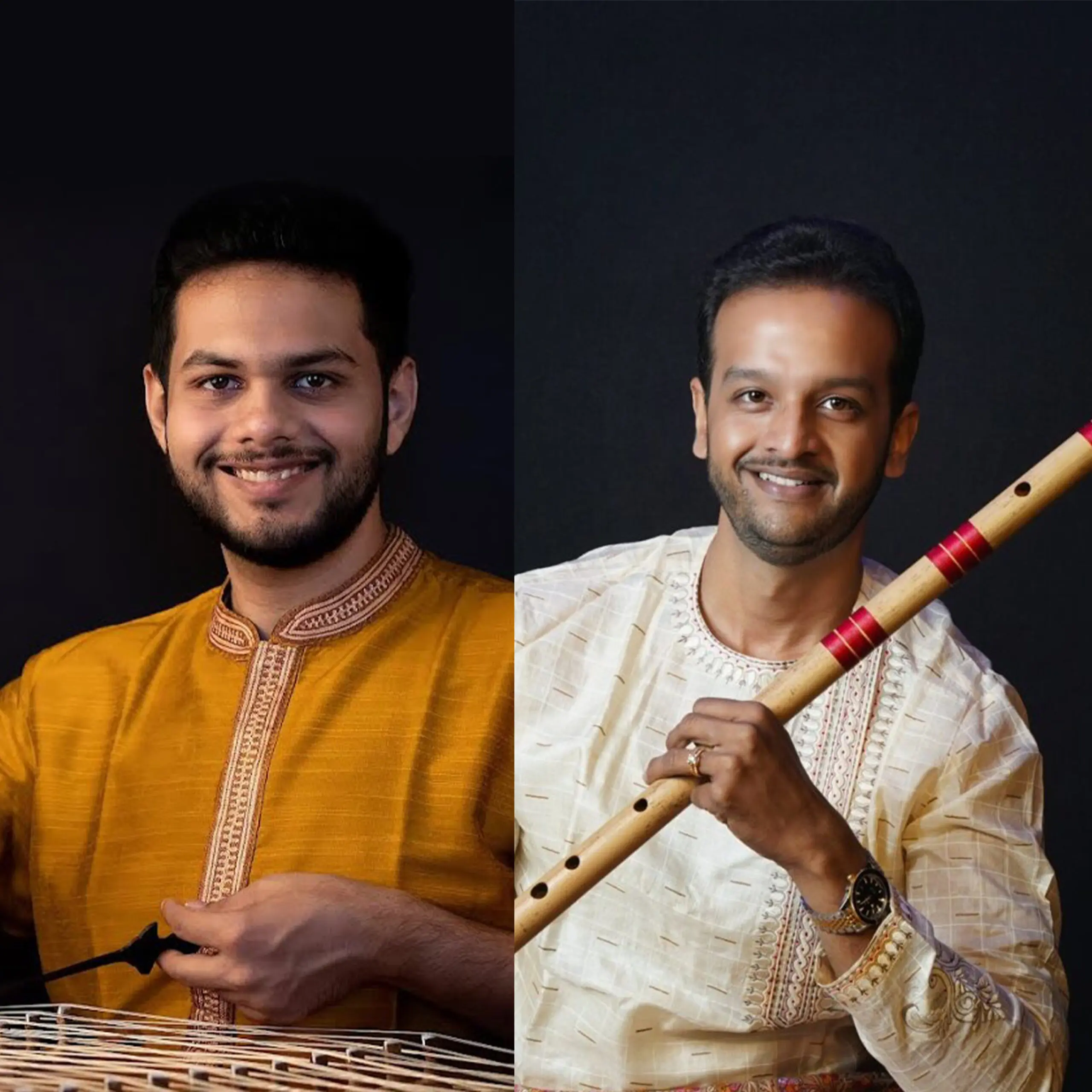 This concert brings together two of India’s most distinctive melodic instruments in a special duet format. Ninad Daithankar plays the santoor—a hundred-stringed trapezoid instrument from Kashmir, struck with lightweight wooden mallets. A Citi-NCPA Scholar, he has performed across India, Europe and North America. Saurabh Vartak plays the bansuri—the bamboo flute associated with Lord Krishna in Hindu tradition. Based in Pune, he regularly performs alongside the legendary Pandit Hariprasad Chaurasia and has established his own academy to pass on this tradition.